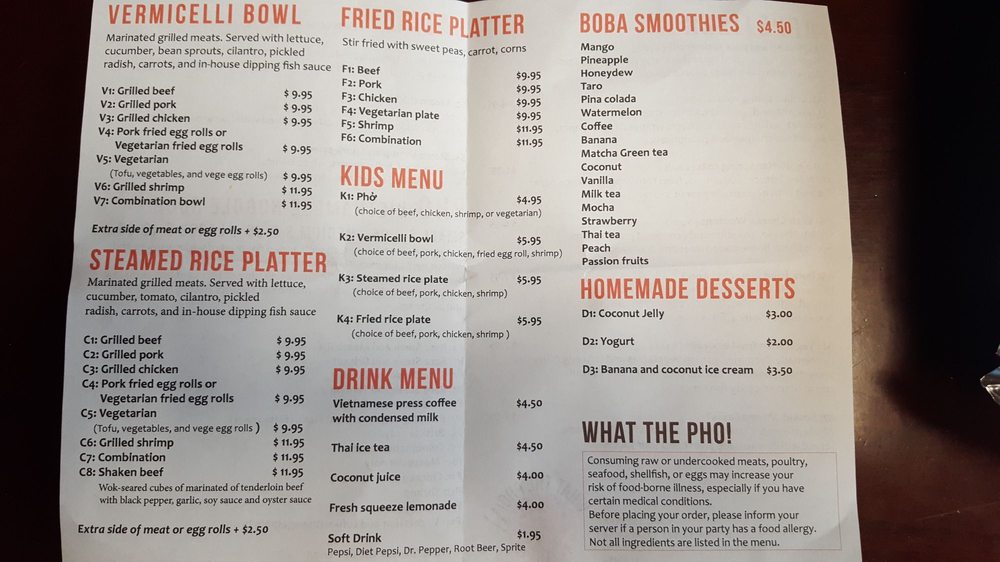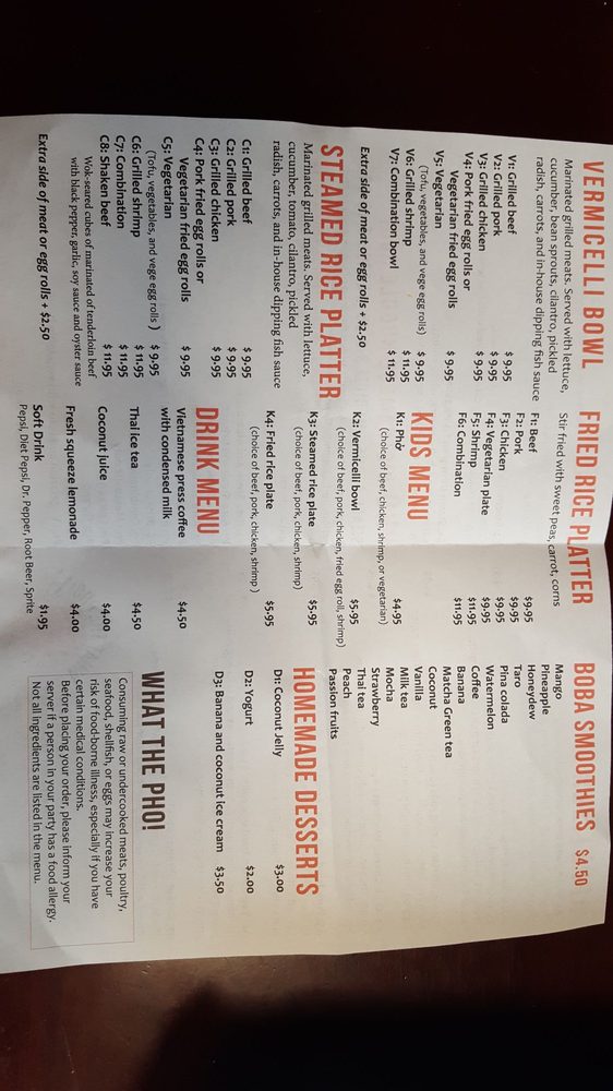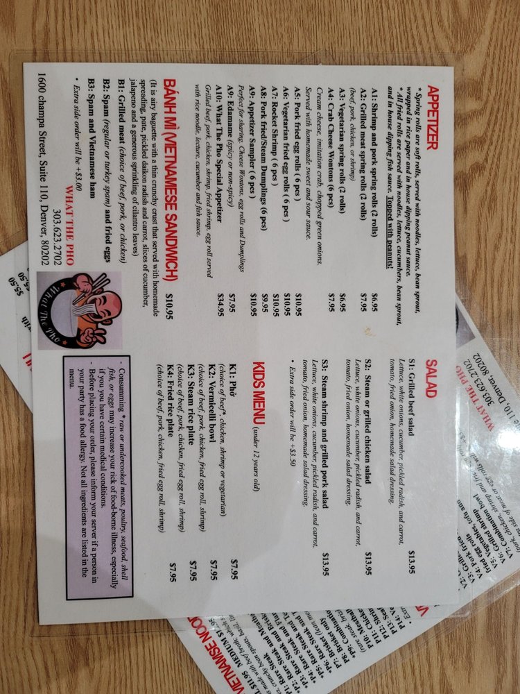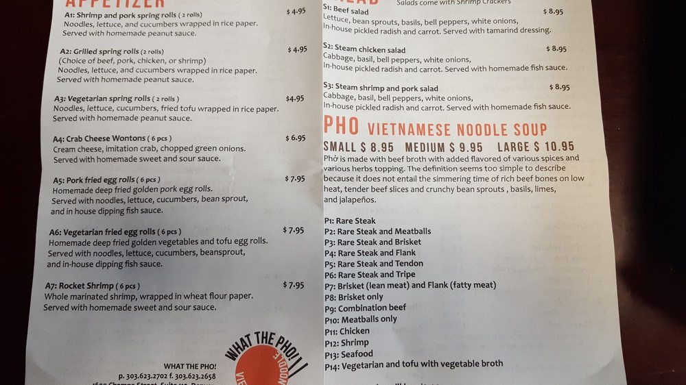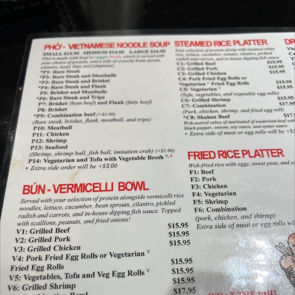 Introducing What the Pho, a hidden gem in downtown Denver offering a variety of Vietnamese dishes. The restaurant is casual and cozy, perfect for a quick dinner or group gathering. What the Pho takes reservations, offers delivery and takeout, and caters to vegans and vegetarians with many options. Their menu features delectable appetizers like shrimp and pork spring rolls, along with flavorful pho bowls like rare steak and meatballs. The grilled vermicelli bowls are also a must-try, with options like grilled beef and pork. Customers rave about the quality and taste of the dishes, with one reviewer praising it as the best pho they've ever had. Don't miss out on the authentic flavors and friendly service at What the Pho.